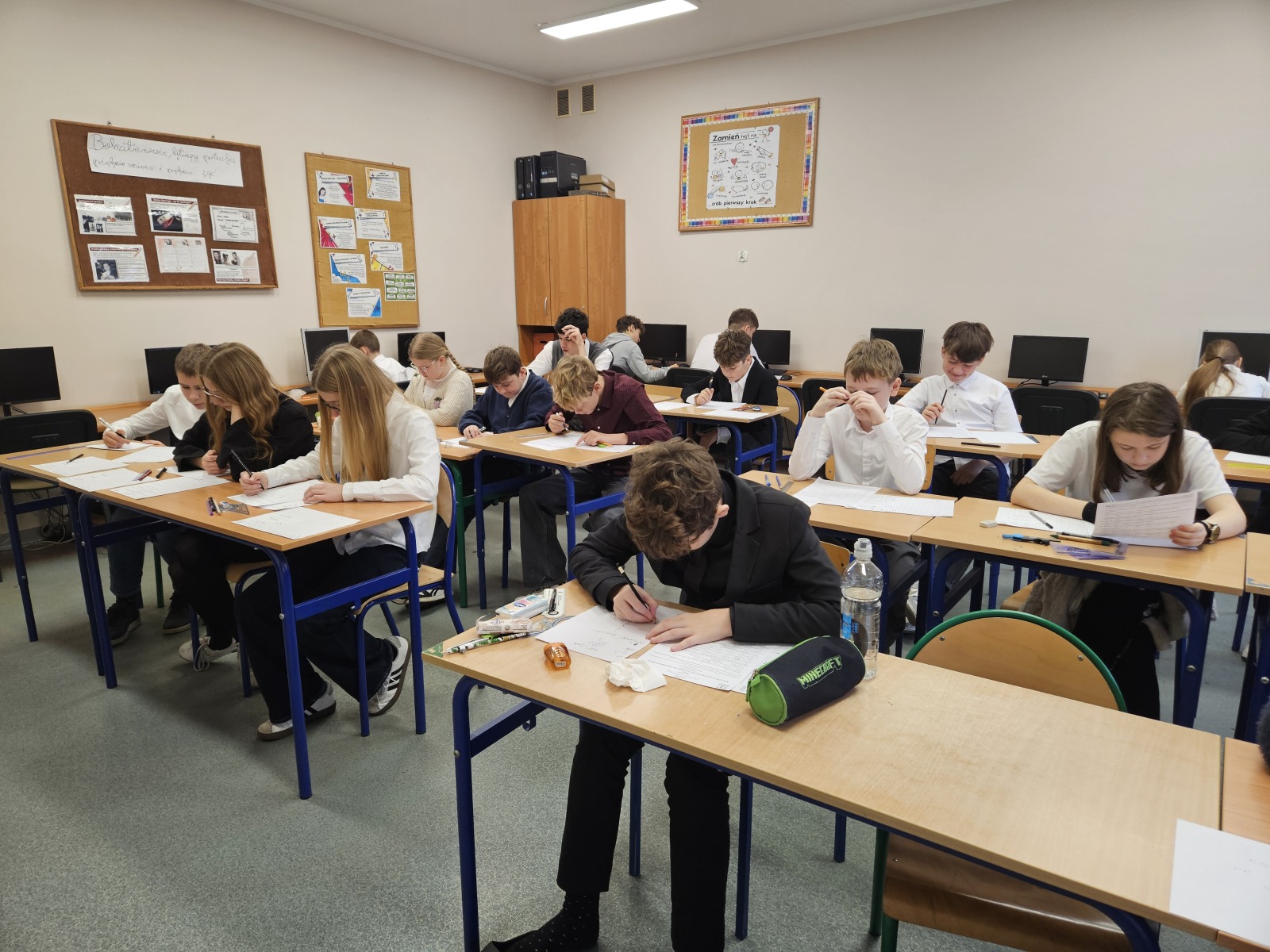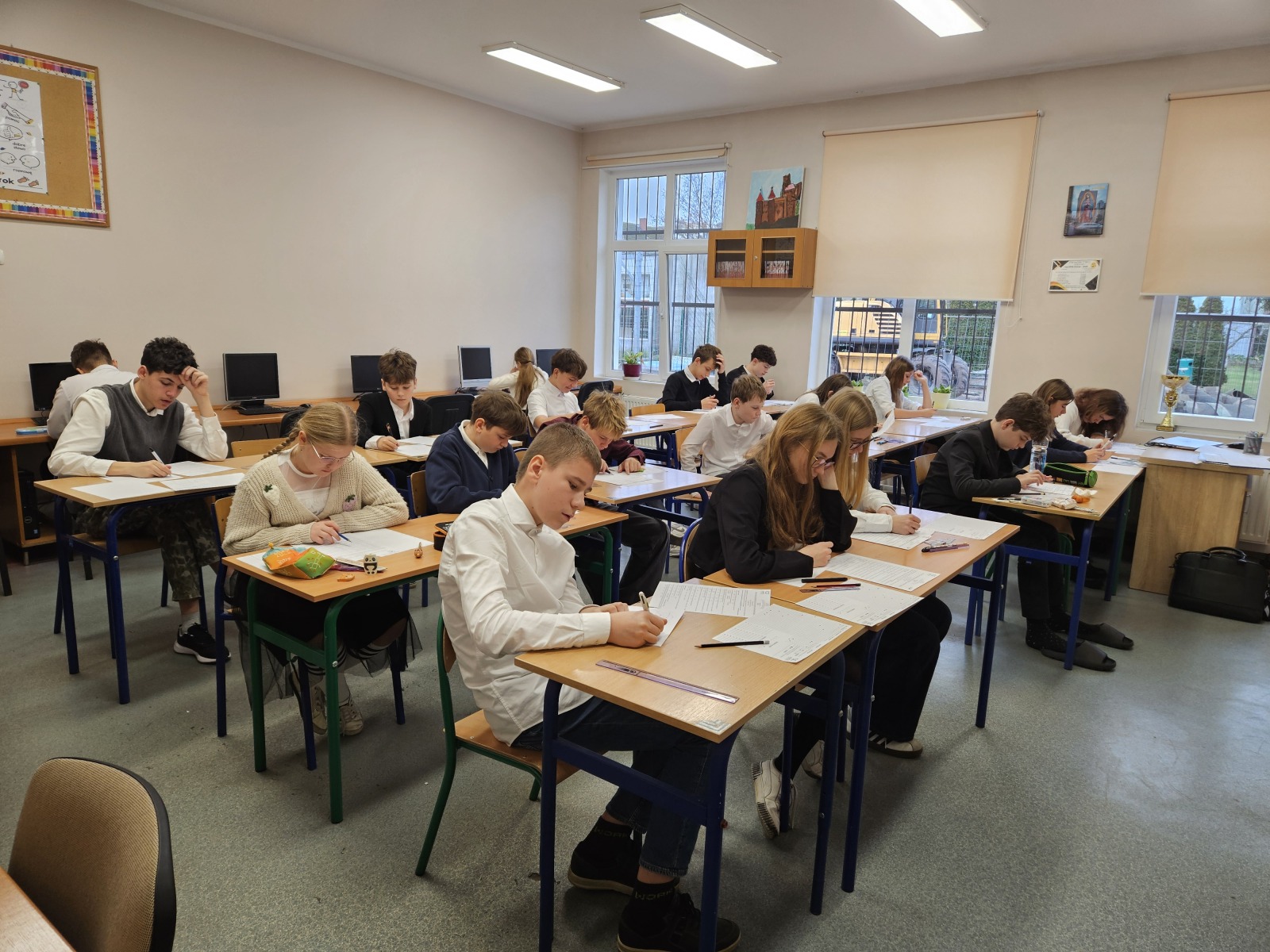 W dniu 20 listopada 2025 roku 30 zdolnych i chętnych uczniów wzięło udział w XXXI edycji Ogólnopolskiego Konkursu Matematycznego Alfik, który od wielu już lat jest przeprowadzany w polskich szkołach w ramach projektu edukacyjnego „Łowimy Talenty”. Test jednokrotnego wyboru w czasie 75 minut rozwiązywało: po 4 uczniów z klasy II, III, V, 1 osoba z klasy IV, 3 osoby z klasy VI, 8 uczniów z klasy VII i 6 uczniów z klasy VIII. Na wyniki ich twórczego i logicznego myślenia oraz podjętego intelektualnego wyzwania musimy poczekać około 8 tygodni. Udział w konkursie godny jest pochwały oraz przyczynia się do satysfakcji i rozwoju jego uczestników!
