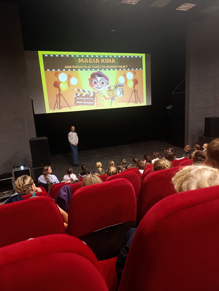 17 września 2025 r. uczniowie klas I–III uczestniczyli w multimedialnej lekcji pt. „Jak powstaje film?” w Złotowskim Domu Kultury. Dzieci w ciekawy i przystępny sposób dowiedziały się, czym jest film i jak wygląda proces jego tworzenia. Spotkanie było atrakcyjną formą nauki, która wzbudziła duże zainteresowanie najmłodszych.