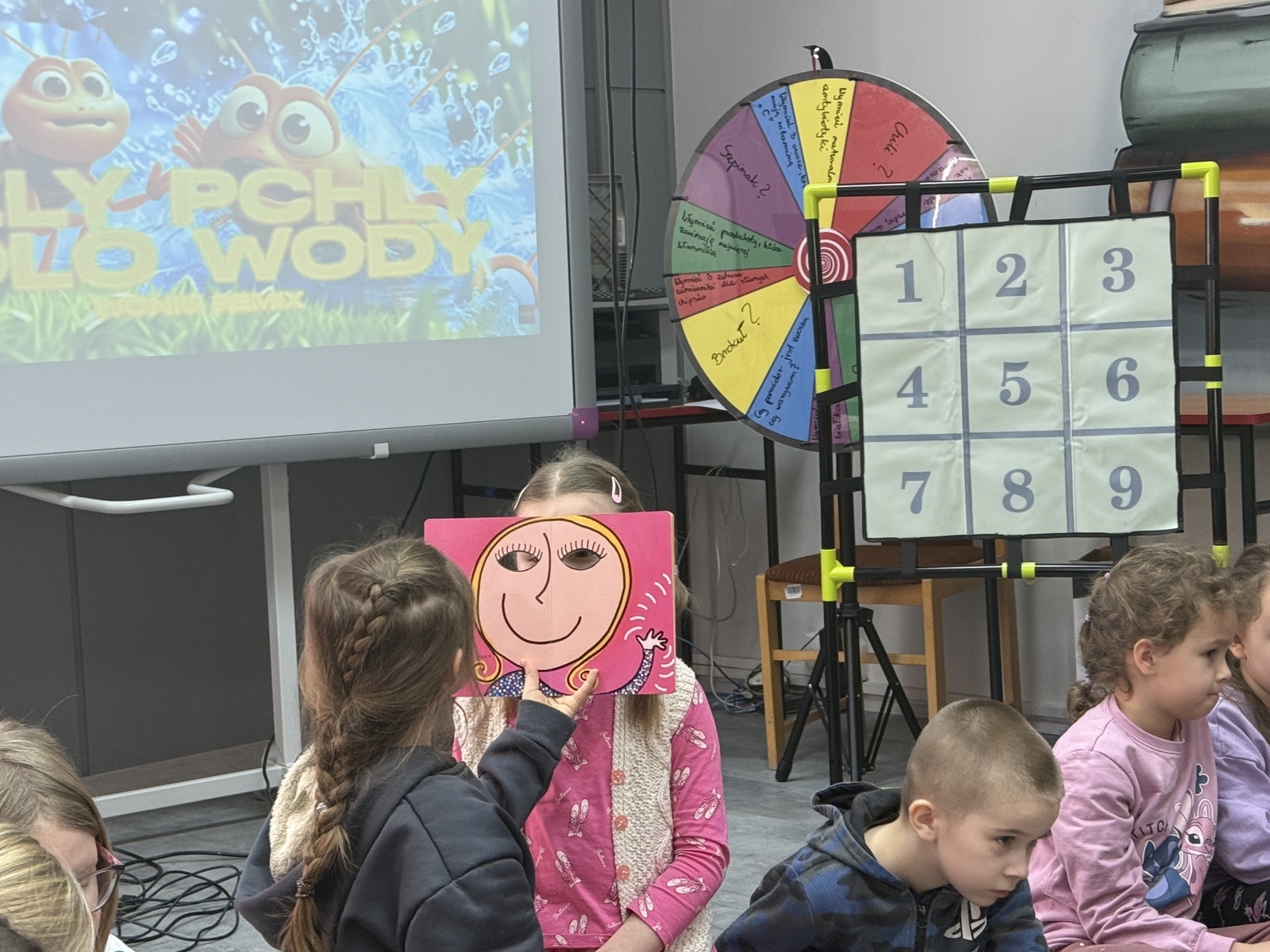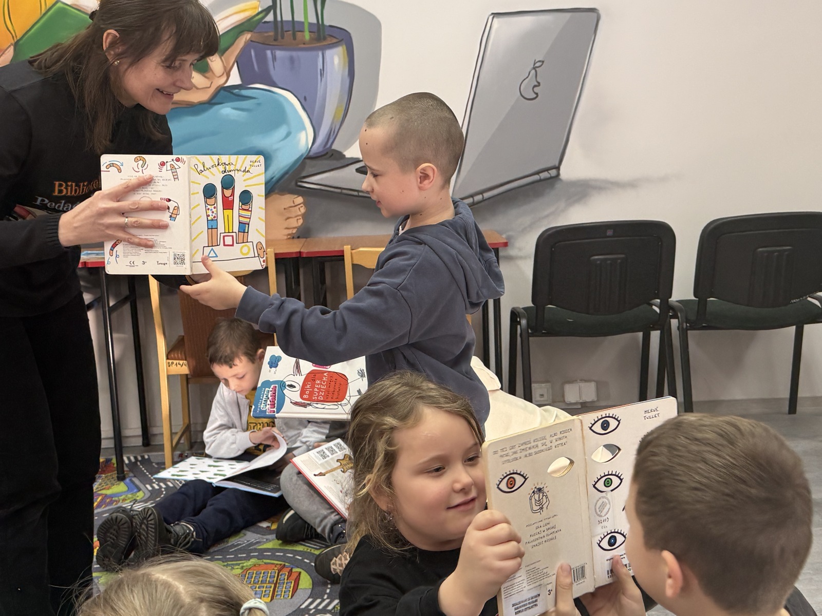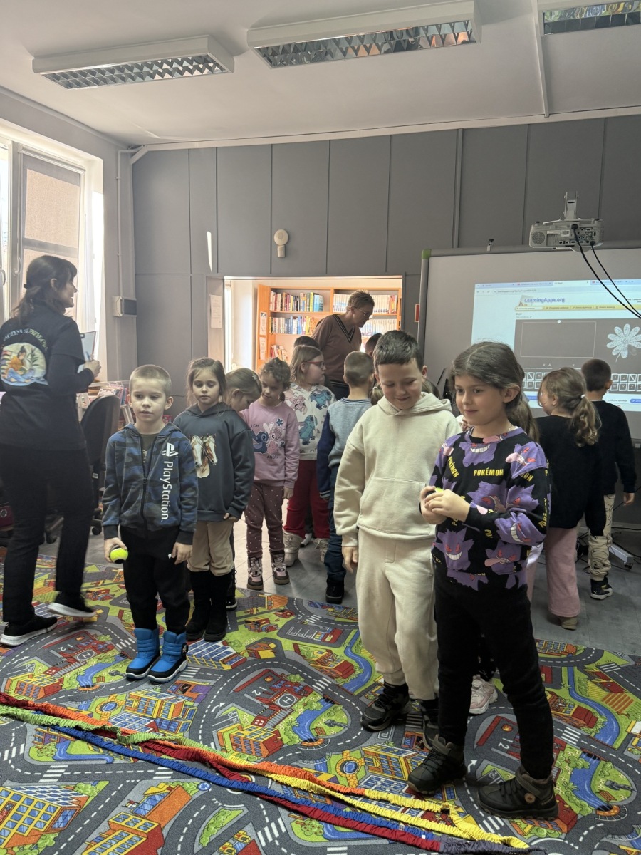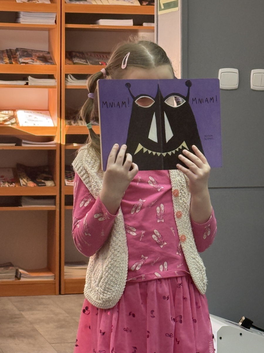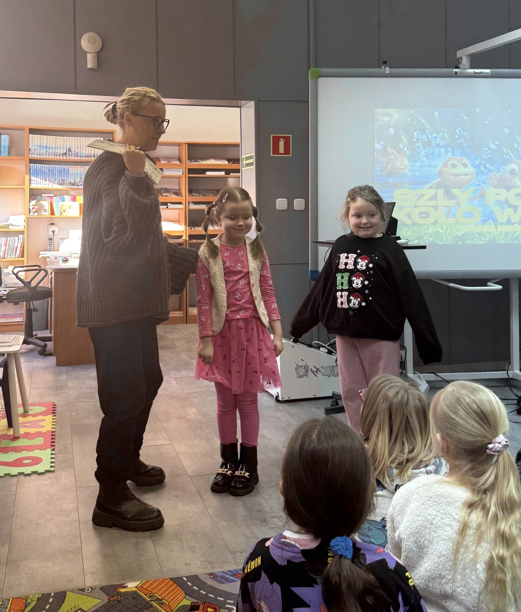 Słuchaliśmy bajek – bo dobra historia to podstawa (nawet jeśli nogi już same rwały się do skakania!). Taneczne szaleństwo – nasze regały z książkami jeszcze nigdy nie widziały takich ruchów! Parkiet zapłonął! Rzut do celu – emocje sięgnęły zenitu! Rywalizacja była zacięta.
