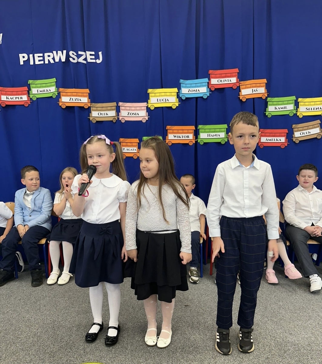 Pierwszoklasiści zaprezentowali krótkie przedstawienie, pełne uśmiechu i pozytywnych emocji. Rodzice przygotowali dla dzieci niespodzianki. Samorząd uczniowski również zadbał o miłe upominki dla naszych najmłodszych kolegów.