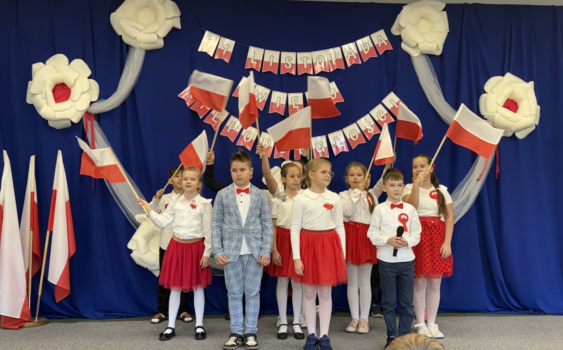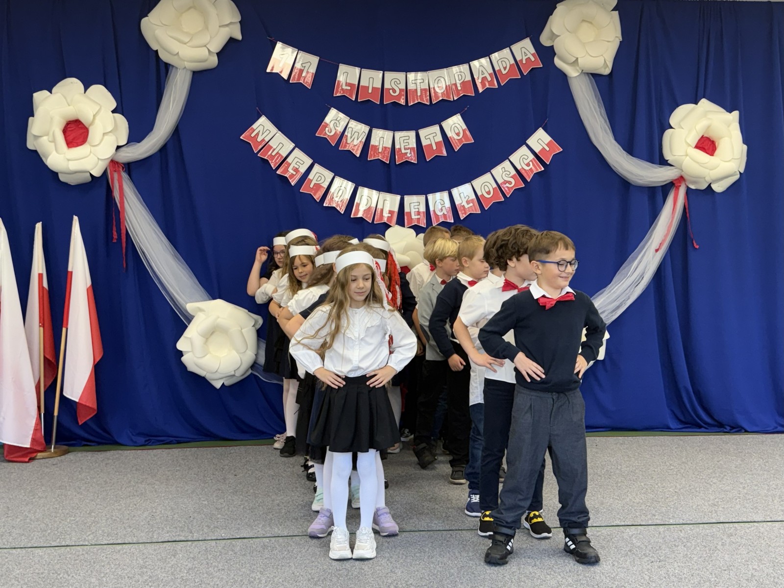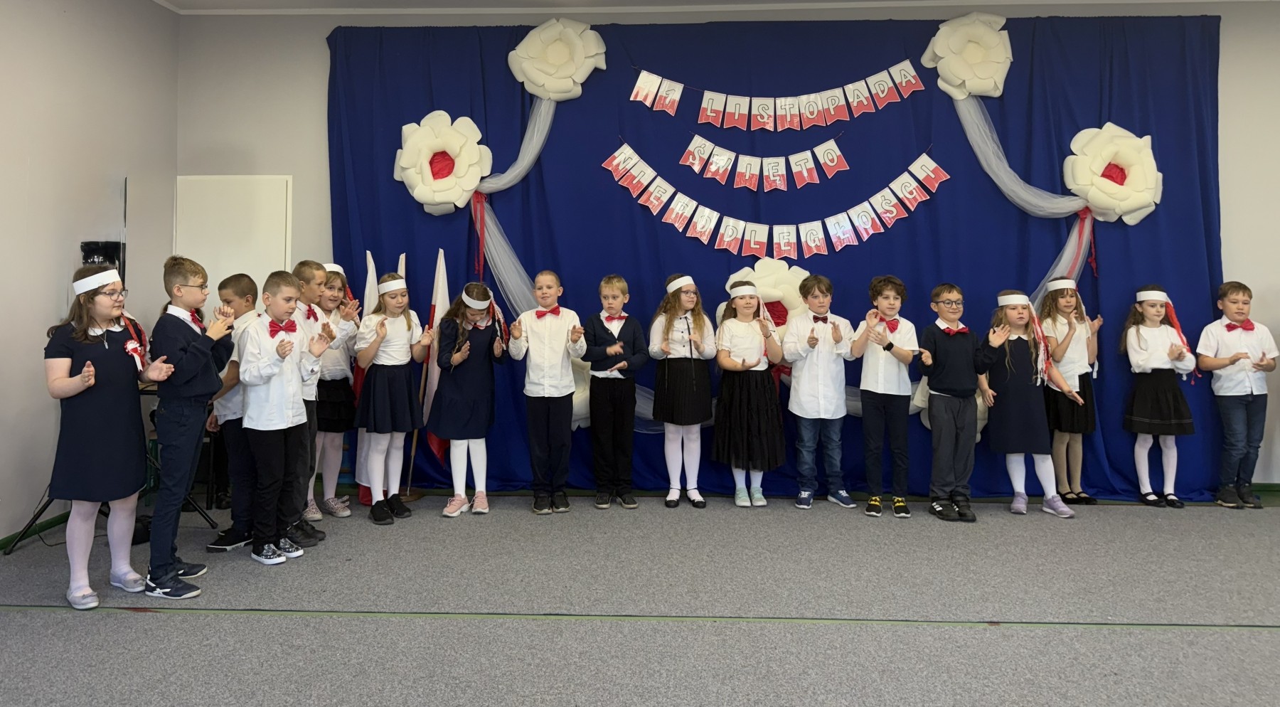 7 listopada w naszej szkole odbyły się uroczyste obchody Święta Niepodległości. Uczniowie klas 1-3 przygotowali wyjątkowe przedstawienie, w którym poprzez wiersze, piosenki i krótkie scenki przypomnieli najważniejsze wydarzenia z historii Polski. Występ był pełen emocji i wzruszeń, a młodzi aktorzy pokazali, że patriotyzm można wyrażać także w piękny, artystyczny sposób.