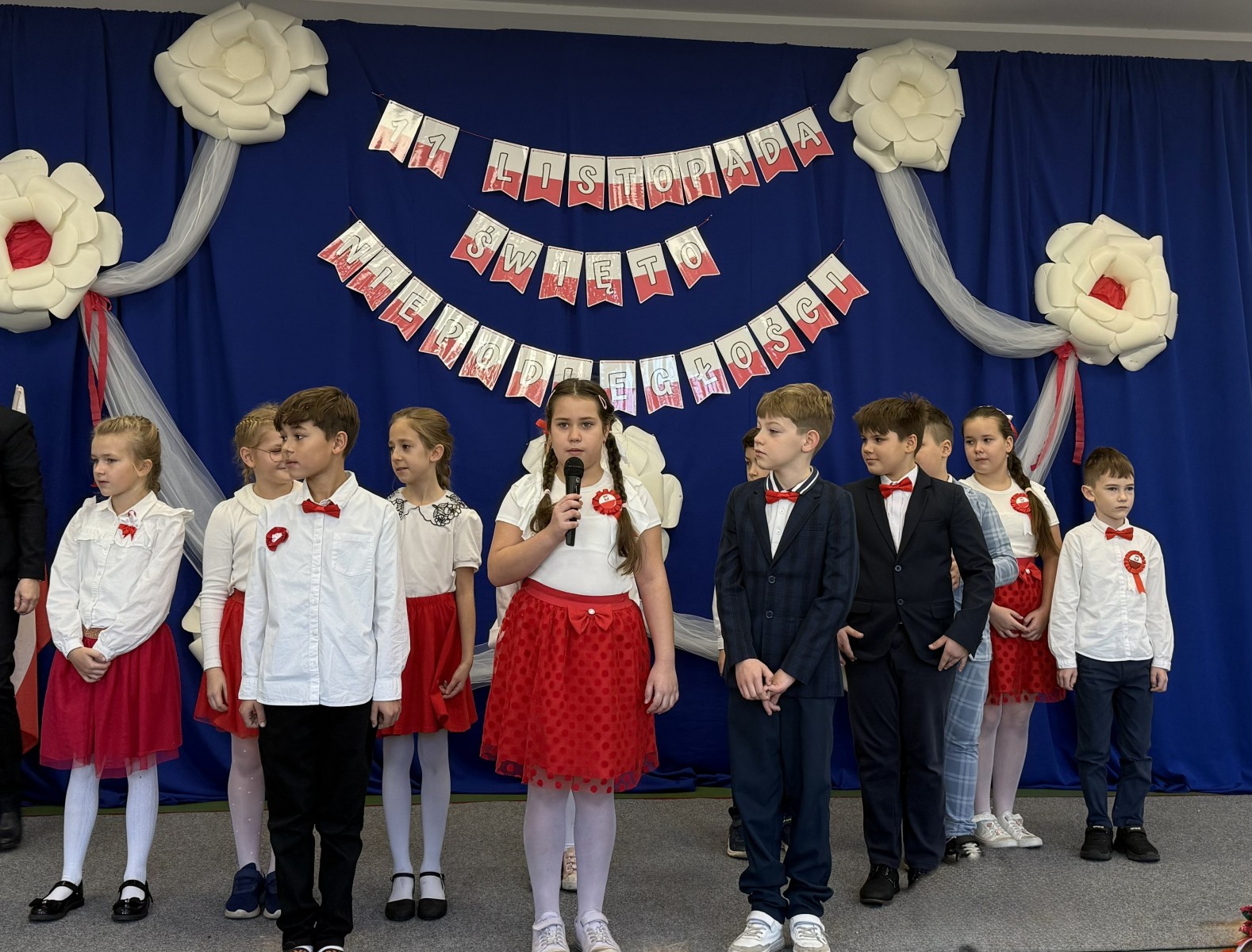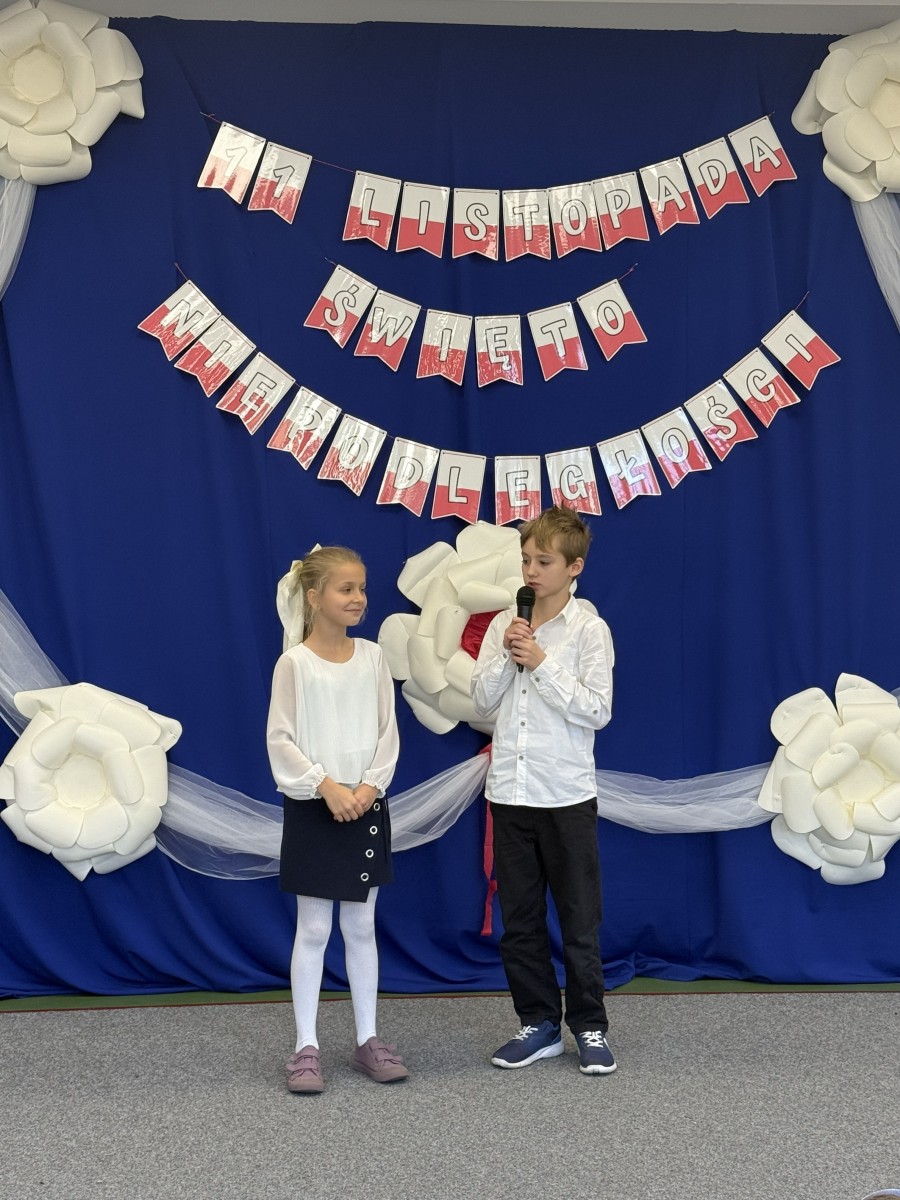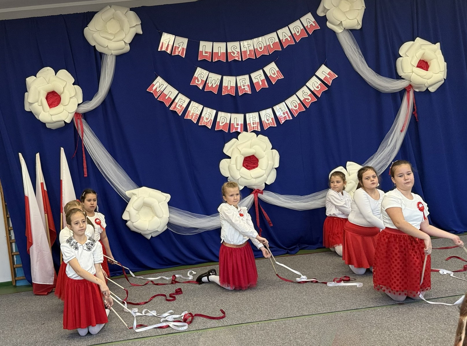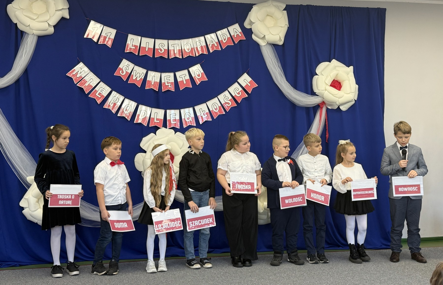 7 listopada w naszej szkole odbyły się uroczyste obchody Święta Niepodległości. Uczniowie klas 1-3 przygotowali wyjątkowe przedstawienie, w którym poprzez wiersze, piosenki i krótkie scenki przypomnieli najważniejsze wydarzenia z historii Polski. Występ był pełen emocji i wzruszeń, a młodzi aktorzy pokazali, że patriotyzm można wyrażać także w piękny, artystyczny sposób.