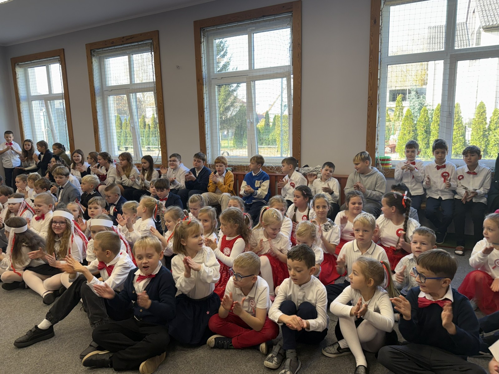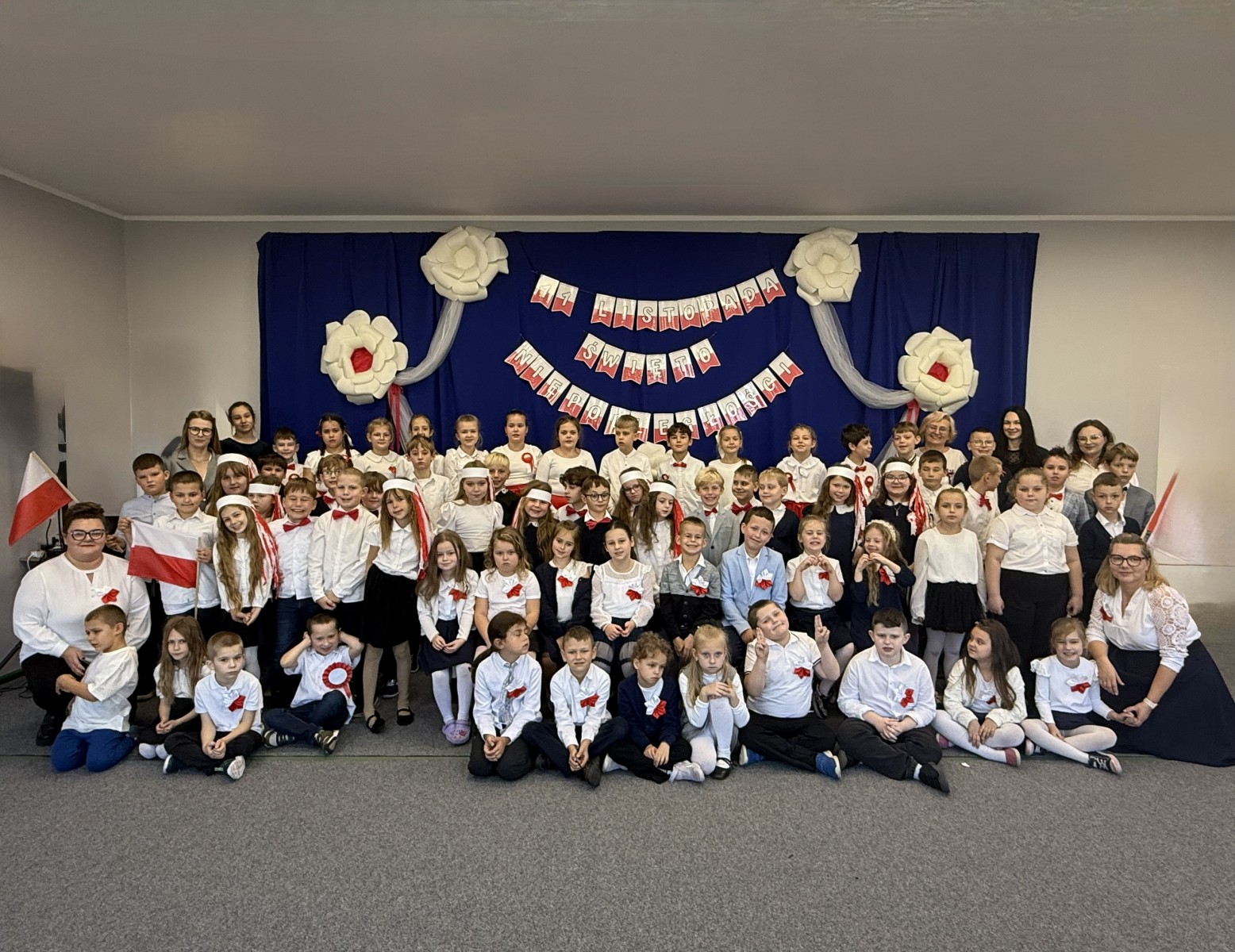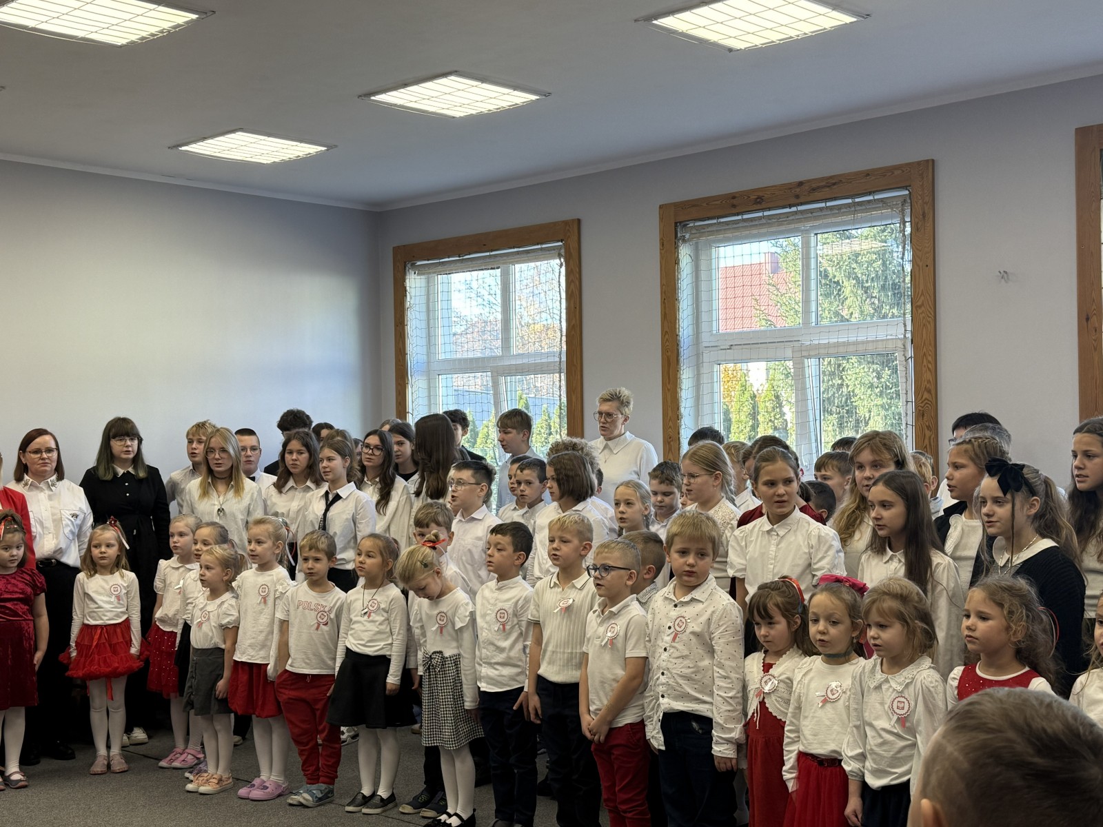 Kulminacyjnym momentem obchodów było wspólne odśpiewanie hymnu narodowego. Do klas 1-3 dołączyli uczniowie klas 4–8, tworząc jedną wielką szkolną wspólnotę. Wspólne śpiewanie „Mazurka Dąbrowskiego” było pięknym i podniosłym akcentem, który zakończył nasze świętowanie.